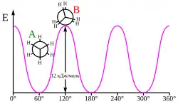 Энергии крайних и промежуточных конформаций принято представлять в виде циклических графиков, где по оси абсцисс отложен торсионный угол, а по оси ординат — энергия.