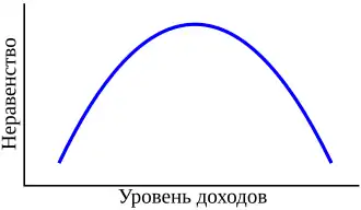 Саймон Кузнец утверждал, что одним из основных факторов, обусловливающих уровень экономического неравенства является стадия экономического развития страны. Кузнец описывал кривую, как соотношение между уровнем доходов и неравенством, как показано на рисунке. Эта теория гласит, что страны с очень низким уровнем развития имеют относительно равное распределение богатства.