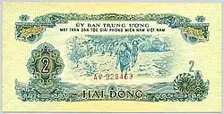 200 донгов | 162×71 | Зелёный | Солдат с автоматом | Крестьянка с снопами | 1955 | |
