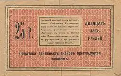 Были выпущены боны номиналом 1, 3, 5, 10, 25 рублей. Размеры от 147×92 мм (1 рубль) до 173×110 мм (25 рублей). Номера в каталоге Рябченко: 843—847.