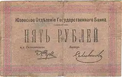 - Юзовские временные деньги образца 1918 года. Дата обращения: 30 октября 2008. Архивировано из оригинала 23 декабря 2012 года.