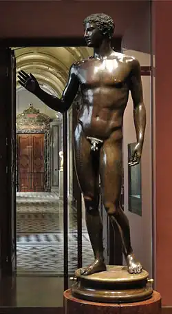 Бронзовая статуя изображает обнажённого юношу, стоящего неподвижно, примерно в натуральную величину (1,85 метра в высоту). Правая нога является несущей, а левая — свободная, едва касается земли пальцами. Правую руку юноша держит на высоте плеча, его голова слегка повёрнута вправо, как бы следуя жесту правой руки[1][2]. На правом бедре имеется надпись: