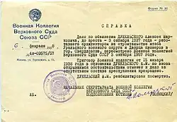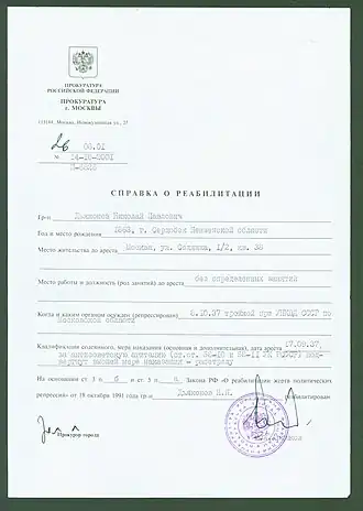 - ↑ Закон РФ от 18 октября 1991 года № 1761-I «О реабилитации жертв политических репрессий»