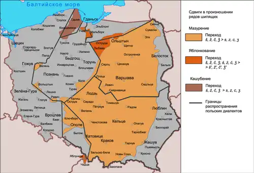 - ↑ Gwary polskie. Przewodnik multimedialny pod redakcją Haliny Karaś (пол.). — Leksykon. Mazurzenie. Архивировано 17 октября 2012 года. (Дата обращения: 30 октября 2012)