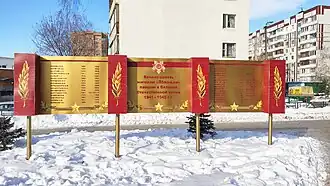 - Стена Памяти с именами жителей посёлка Яблонька, павших в боях Великой Отечественной войны. Находится между домом № 117 по улице Георгия Димитрова и ТЦ «Улей», рядом с улицей Демократической.