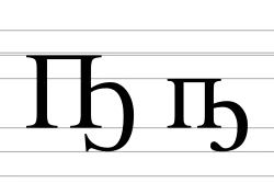 | Буква кириллицы П с крюком посередине | |||||||||||||||||||||||