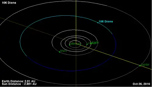 (106) Диона (лат. Dione) — астероид из группы главного пояса, чей состав, как предполагается, аналогичен составу Цереры. Он был открыт 10 октября 1868 года американским астрономом Дж. К. Уотсоном в Детройтской обсерватории и назван в честь титаниды Дионы из древнегреческой мифологии[1].