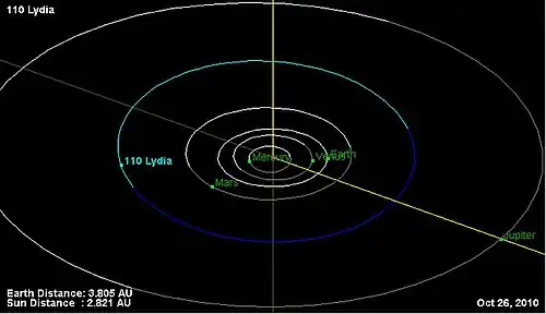 (110) Лидия (лат. Lydia) — астероид главного пояса, принадлежащий к спектральному классу M и возглавляющей одноимённое семейство астероидов. Он был открыт 19 апреля 1870 года французским астрономом Альфонсом Борелли в Марсельской обсерватории и назван в честь Лидии, одной из стран, некогда располагавшихся в Малой Азии[1].