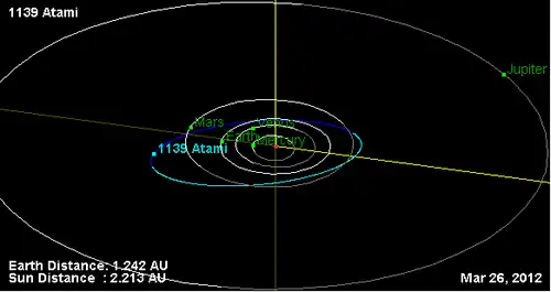 - Орбита астероида Атами и его положение в Солнечной системе
