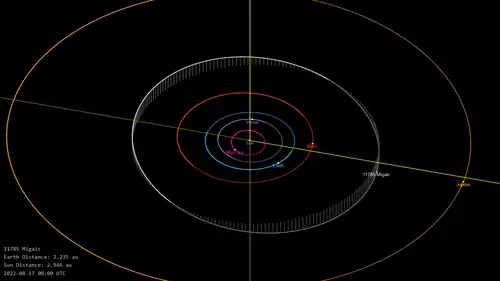 Орбита астероида Миигаик и его положение в Солнечной системе