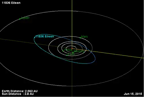 - Орбита астероида Айлин и его положение в Солнечной системе