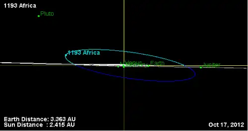 - Орбита астероида Африка и его положение в Солнечной системе