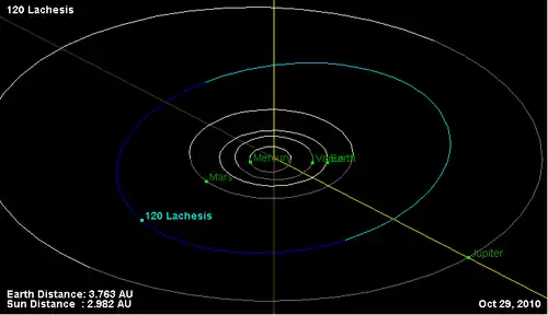 (120) Лахесис (др.-греч. Λάχεσις) — крупный астероид главного пояса, принадлежащий к тёмному спектральному классу C. Он был открыт 10 апреля 1872 года французским астрономом Альфонсом Борелли и назван в честь Лахесис, одной из Мойры, одной из богинь судьбы в древнегреческой мифологии[1].