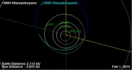 - Орбита астероида Масаакикояма и его положение в Солнечной системе