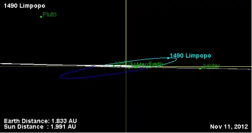 - Орбита астероида Лимпопо и его положение в Солнечной системе