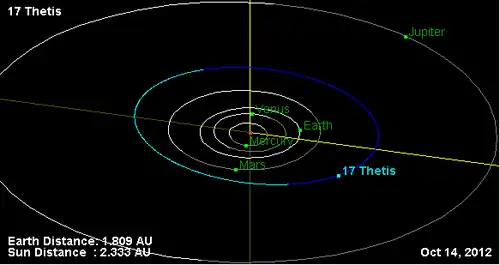 - Elements and Ephemeris for (17) Thetis. Центр малых планет. Архивировано 17 октября 2012 года.