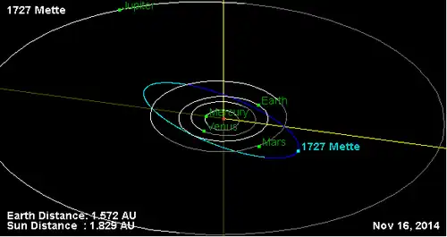 - Орбита астероида Метте и его положение в Солнечной системе