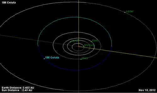 (186) Келута (лат. Celuta) — сравнительно небольшой астероид главного пояса, принадлежащий к светлому спектральному классу S. Он был открыт 6 апреля 1878 года французскими астрономами, братьями Полем и Проспером Анри. Метеорит назван именем одной из героинь повести французского писателя Франсуа Рене де Шатобриана «Атала»