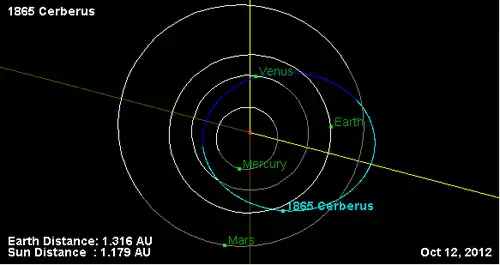 - Орбита астероида Цербер и его положение в Солнечной системе