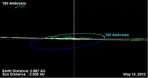 - Орбита астероида Амброзия и его положение в Солнечной системе