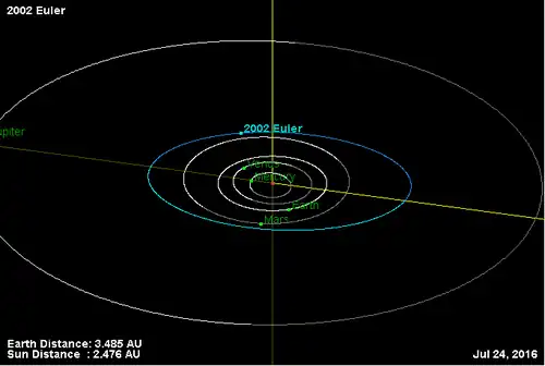 (2002) Эйлер (лат. Euler) — небольшой астероид главного пояса, около 17 километров в диаметре, который был открыт 29 августа 1973 года российским астрономом Тамарой Смирновой в Крымской астрофизической обсерватории в Научном и назван в честь швейцарского, немецкого и российского математика, физика и астронома Леонарда Эйлера (1707—1783). Эйлер провел большую часть своей жизни в Санкт-Петербурге и был связан с российской академией наук[3]. Астероид делает полный оборот вокруг своей оси за 6 часов[2].