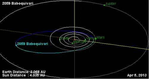 - Орбита астероида Бабиокивари и его положение в Солнечной системе