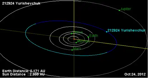 - Орбита астероида Юрий Шевчук и его положение в Солнечной системе