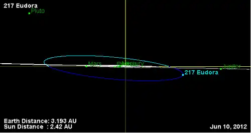 - Орбита астероида Эвдора и его положение в Солнечной системе
