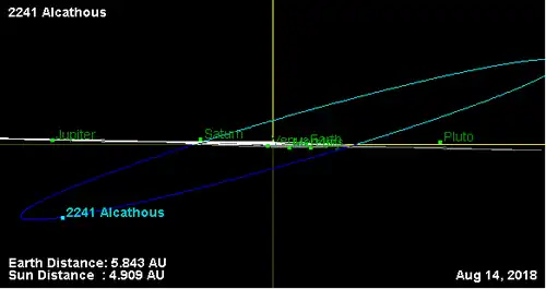 - Орбита астероида Алкафой и его положение в Солнечной системе