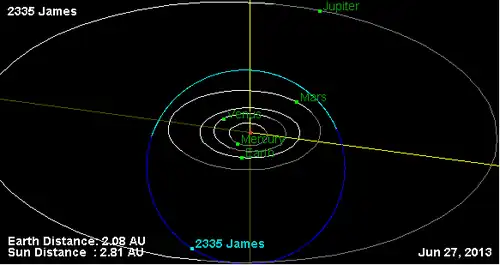 - Орбита астероида Джеймс и его положение в Солнечной системе