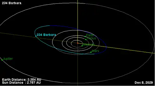 - Орбита астероида Барбара и его положение в Солнечной системе