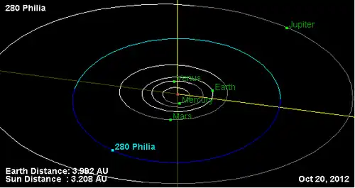 (280) Филия (др.-греч. φιλία) — небольшой астероид главного пояса, который характеризуется крайне малой скоростью вращения вокруг своей оси, составляющей более 2,5 земных суток или около 64 часов. Он был открыт 29 октября 1888 года австрийским астрономом Иоганном Пализой в обсерватории города Вены и назван древнегреческим словом Филия, означающим «любовь», «дружба»[1].