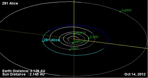 (291) Алиса (лат. Alice) — типичный астероид главного пояса, который принадлежит к силикатным астероидам спектрального класса S и входит в состав семейства Флоры. Астероид был открыт 25 апреля 1890 года австрийским астрономом Иоганном Пализой в Венской обсерватории.