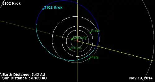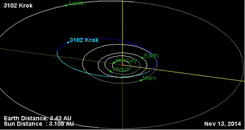 - ↑ (3102) Krok = 1981 QA. Дата обращения: 30 апреля 2013. Архивировано 15 мая 2012 года.