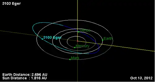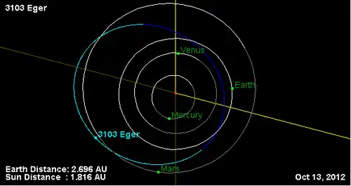 (3103) Эгер (нем. Eger) — околоземный астероид из группы аполлонов, который принадлежит к очень светлому спектральному классу E и характеризуется сильно вытянутой орбитой с большим эксцентриситетом. Он был открыт 20 января 1982 года венгерским астрономом Миклошем Ловашем на станции Матра и назван в честь венгерского города Эгер[1].