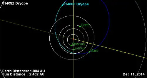 - Орбита астероида Дриопа и его положение в Солнечной системе