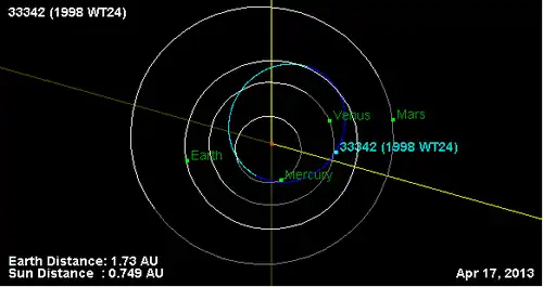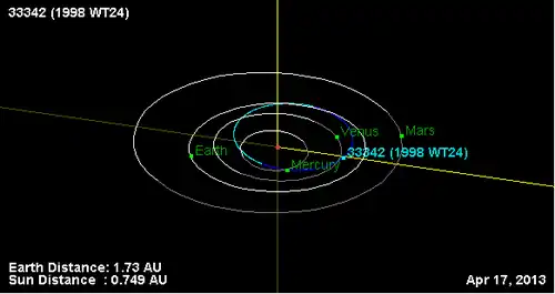 - Орбита астероида 1998 WT24 и его положение в Солнечной системе