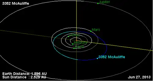 - Орбита астероида Маколифф и его положение в Солнечной системе