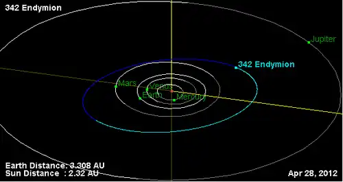 (342) Эндимион (др.-греч. Ἐνδυμίων) — астероид главного пояса, который принадлежит к тёмному спектральному классу C. Он был открыт 17 октября 1892 года немецким астрономом Максом Вольфом в обсерватории Хайдельберга и назван в честь знаменитого своей красотой юноши Эндимиона, который считался олицетворением красоты в древнегреческой мифологии[1].