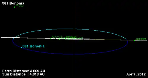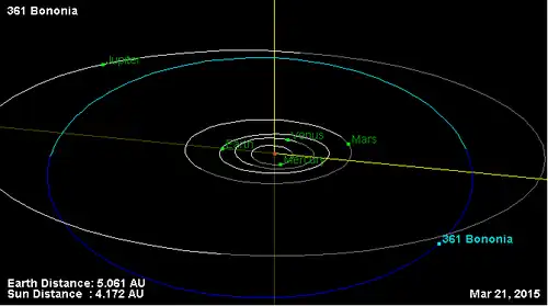 - Орбита астероида Бонония и его положение в Солнечной системе