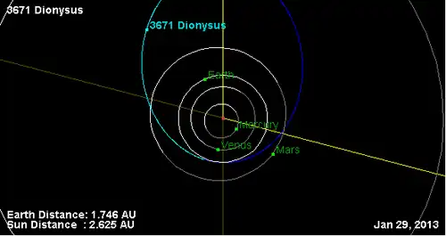 - Орбита астероида Дионис и его положение в Солнечной системе