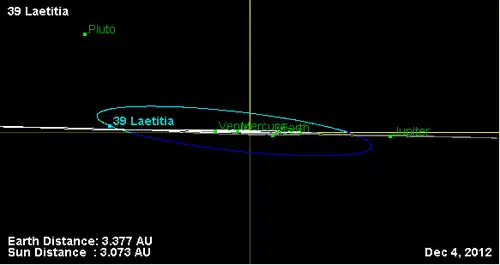 - ↑ AstDys (39) Laetitia Ephemerides. Department of Mathematics, University of Pisa, Italy. Дата обращения: 26 июня 2010. Архивировано из оригинала 28 июня 2012 года.