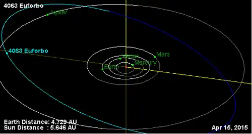 - Орбита астероида Эвфорбо и его положение в Солнечной системе