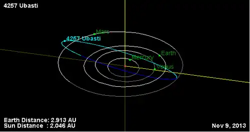 - Орбита астероида Убасти и его положение в Солнечной системе