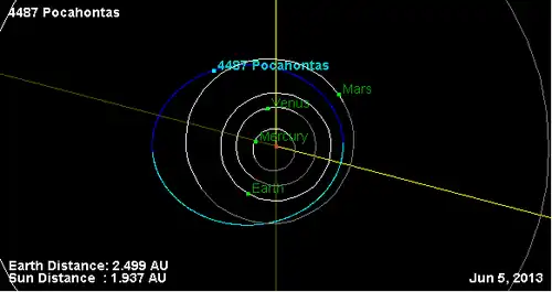 - Орбита астероида Покахонтас и его положение в Солнечной системе