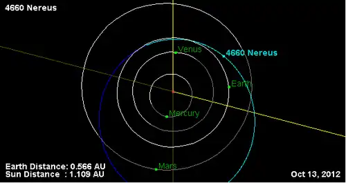 - ↑ Michel, P.; Froeschle, C.; Farinella, P. Dynamical evolution of two near-Earth asteroids to be explored by spacecraft: (433) Eros and (4660) Nereus. (англ.) // Astronomy and Astrophysics : journal. — 1996. — Vol. 313. — P. 993—1007. Архивировано 28 мая 2019 года. (англ.)