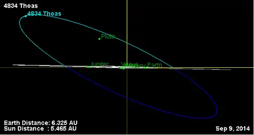 | Текущее расстояние от Земли | 5,609 а. е. |