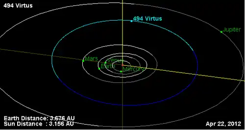 (494) Виртус (лат. Virtus) — астероид главного пояса, принадлежащий к тёмному спектральному классу C. Он был открыт 7 октября 1902 года немецким астрономом Максом Вольфом в обсерватории Хайдельберг в Германии и назван в честь богини римской мифологии, спутницы Марса Виртусы[1].