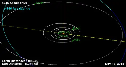 - Орбита астероида Аскалаф и его положение в Солнечной системе