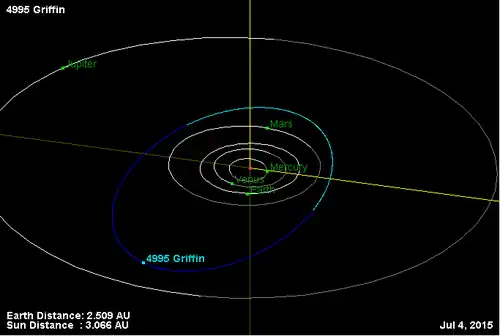 - Орбита астероида Гриффин и его положение в Солнечной системе